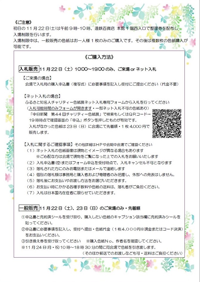 中日新聞東海本社様主催の「第44回ふるさと知名人チャリティー色紙展」に今年も参加させていただきました。
